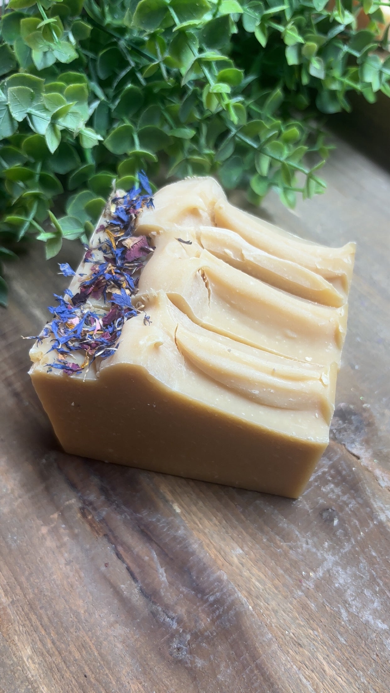 Ingredients: goat milk, olive oil, coconut oil, grass fed lard, lye, castor oil, beeswax, fragrance or essential oil, mica.